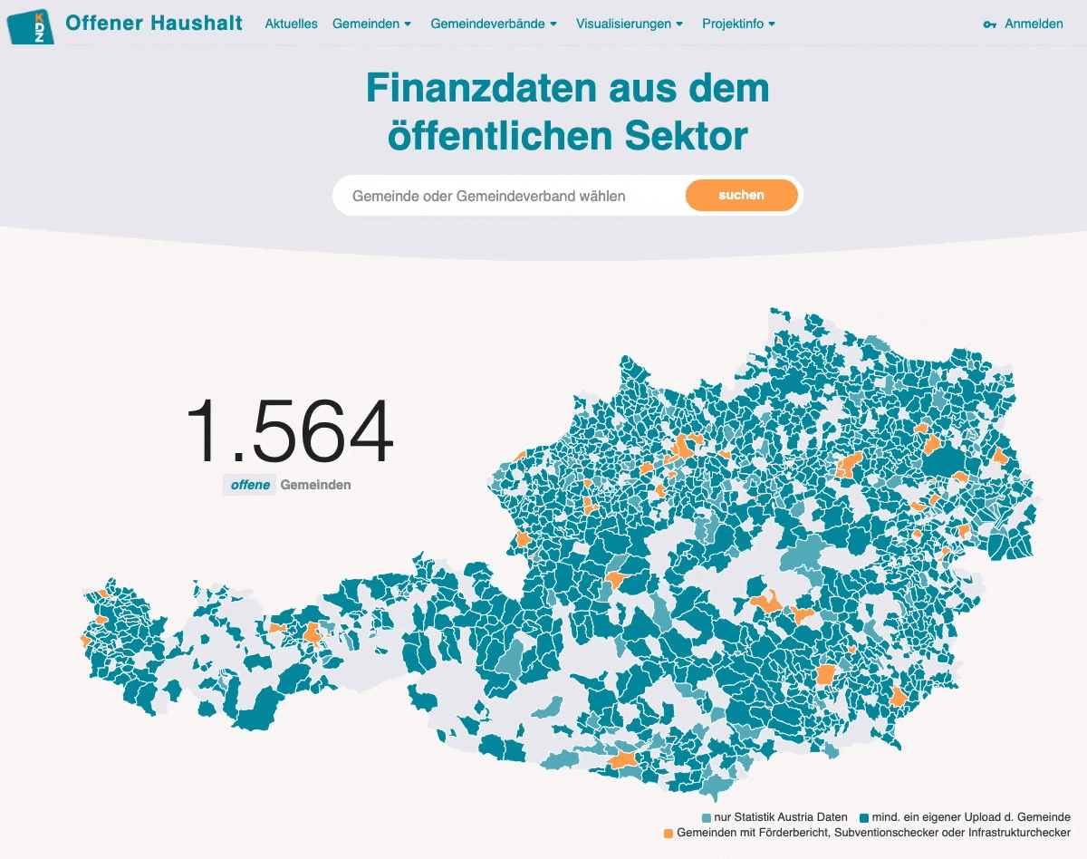 The Austrian Open Spending Portal is a multiple award-winning platform and the largest data provider for data.gv.at. The transparency platform provides spending and budget data for all Austrian municipalities. Mayors have been granted access to view visualizations of their spending data, dating back to 2000. With just two simple clicks, not only can the data be published, but also the interactive visualizations for a better understanding of complex data.